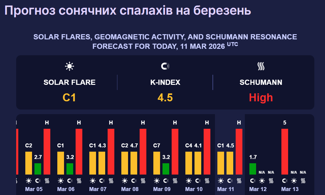 У четвер, 12 березня, потужних магнітних бур не очікується. Проте уже в п'ятницю сонячна активність значно зросте.