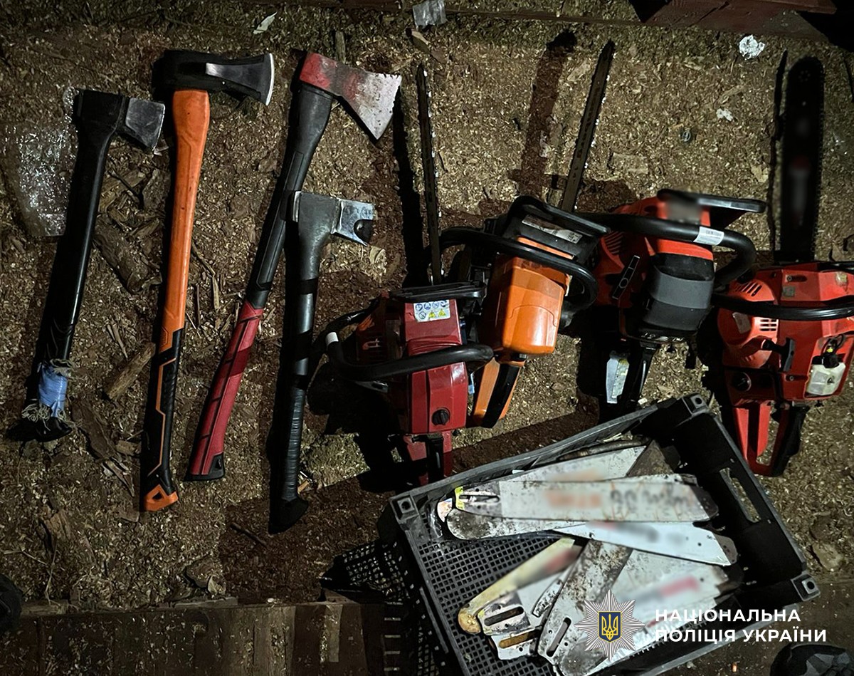 За даними слідства, зрізану деревину фігуранти завантажили до автомобіля і перевезли до обійстя одного з них, де були затримані правоохоронцями. Під час проведення слідчих дій поліцейські вилучили незаконно здобуту деревину, бензопили та сокири. Все скерували на експертні дослідження.