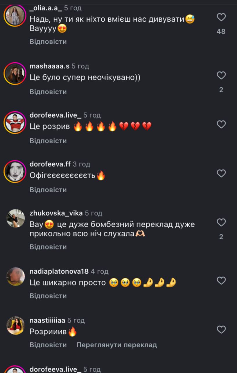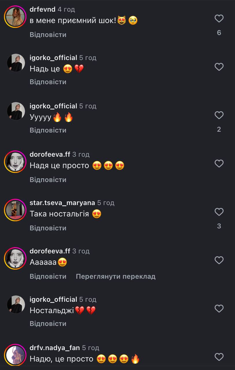 "Кидає мені якось молодий український електронний музикант ремікс на трек "505". А я така — мені подобається. Ну й ось "505" (Remix) вже на всіх музичних платформах", — зазначила Дорофєєва.