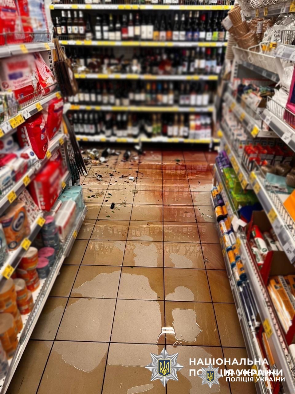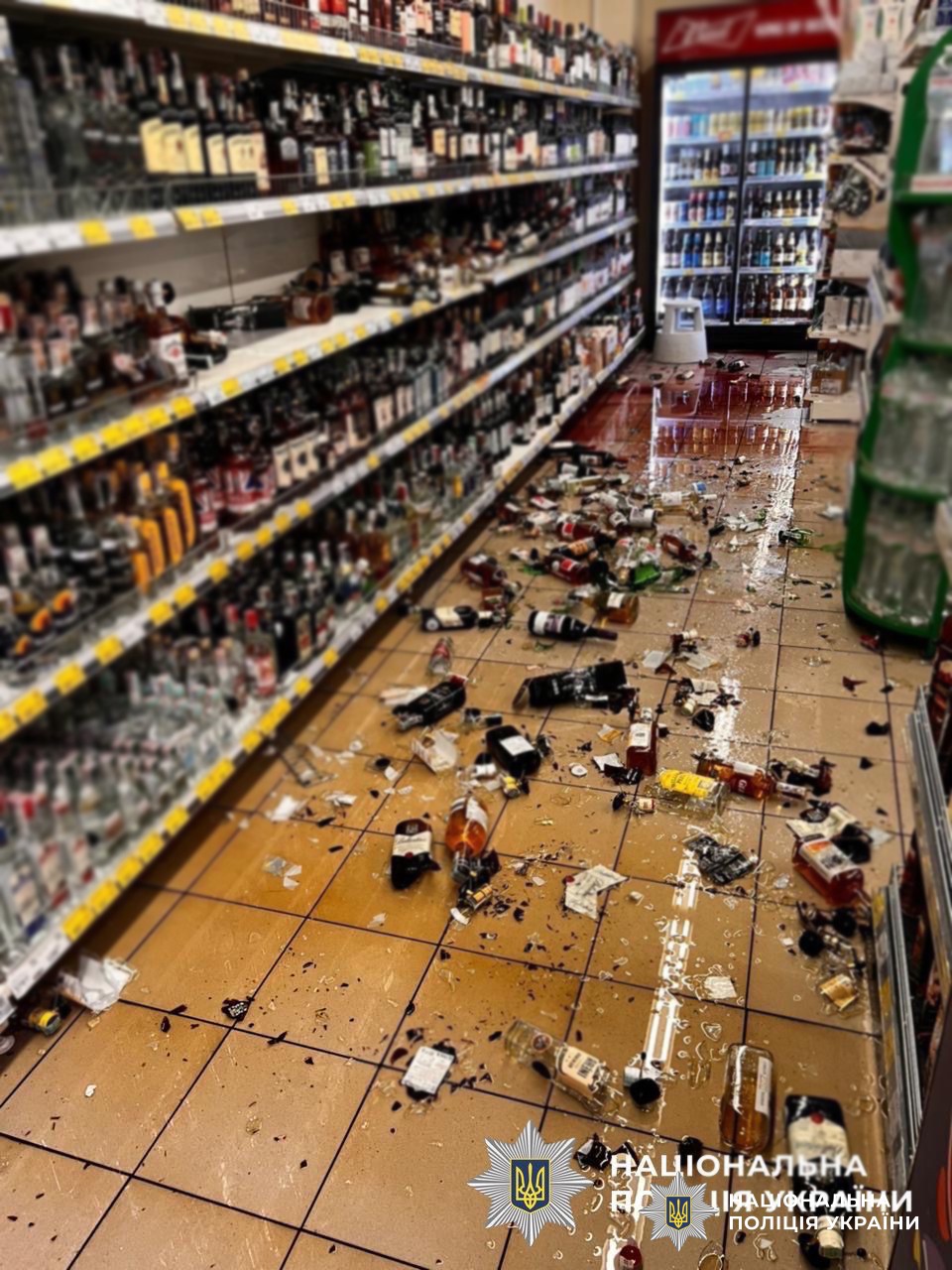 До поліції звернулася адміністратор магазину, яка повідомила про те, що один з покупців виражається нецензурною лайкою, а також б’є та скидає з полиць пляшки з алкоголем.