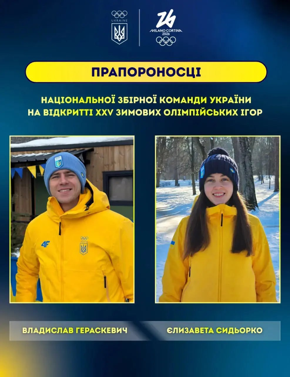 Україну на цих змаганнях преставить 46 спортсменів в 11 видах спорту. У ході церемонії відкриття пройде традиційний парад країн, у якому візьме участь збірна України. Прапор нашої країни в Мілані понесе Єлизавета Сидьорко, а в Кортіна-д'Ампеццо — Владислав Гераскевич.