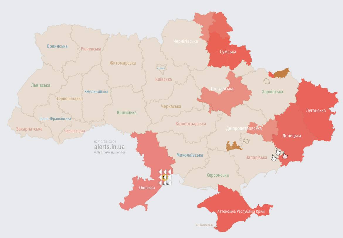 Станом на зараз мапа повітряних тривог має такий вигляд: