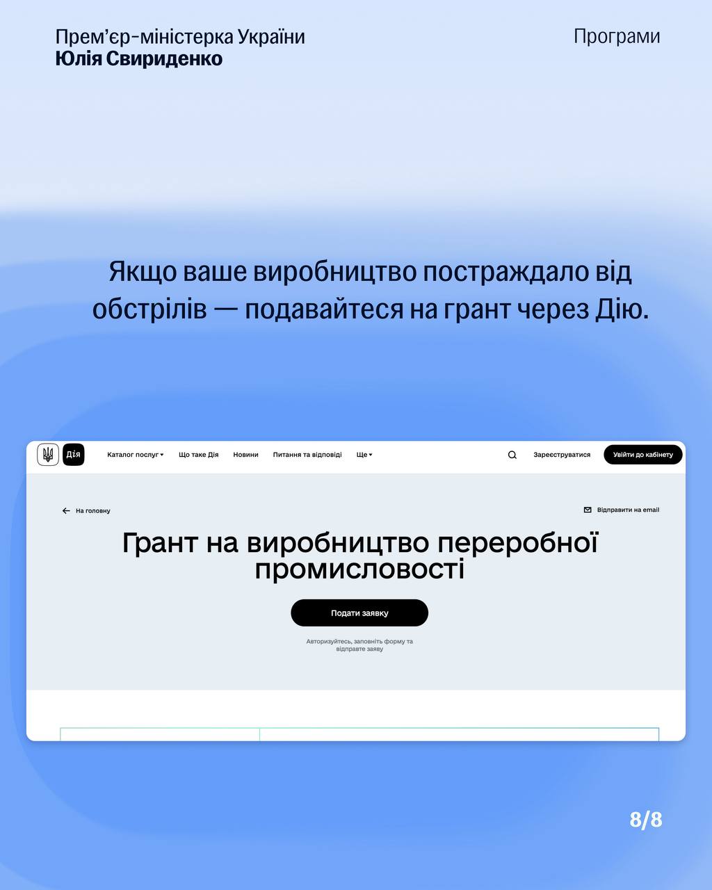 Як повідомила прем'єр-міністр України Юлія Свириденко, бізнес може отримати фінансування як на розвиток і масштабування виробництва, так і на відновлення обладнання після російських обстрілів.