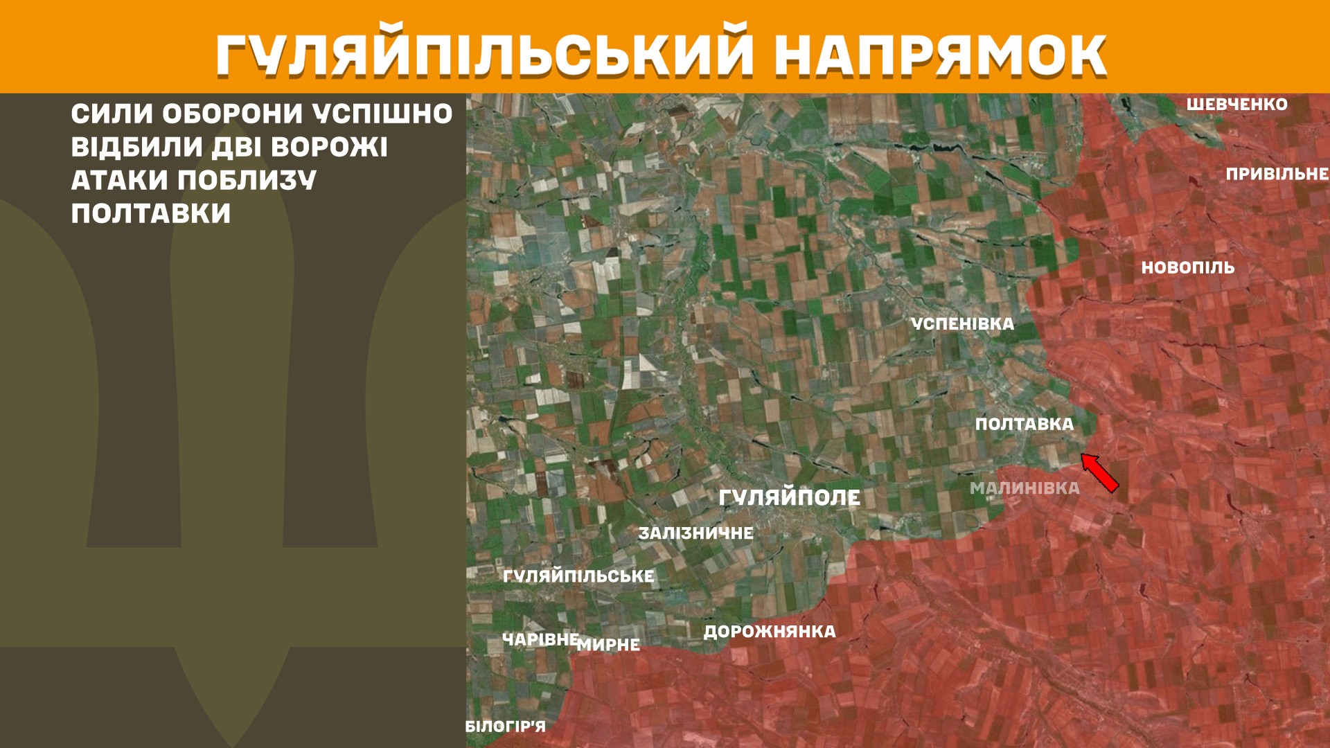 На Гуляйпільському напрямку Сили оборони успішно відбили дві ворожі атаки поблизу Полтавки.