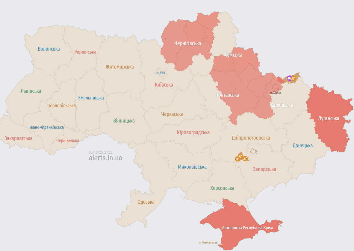 У неділю ввечері, 5 жовтня, російська армія атакує Україну ударними безпілотниками типу "Шахед". Сирени пролунали одразу в кількох областях.