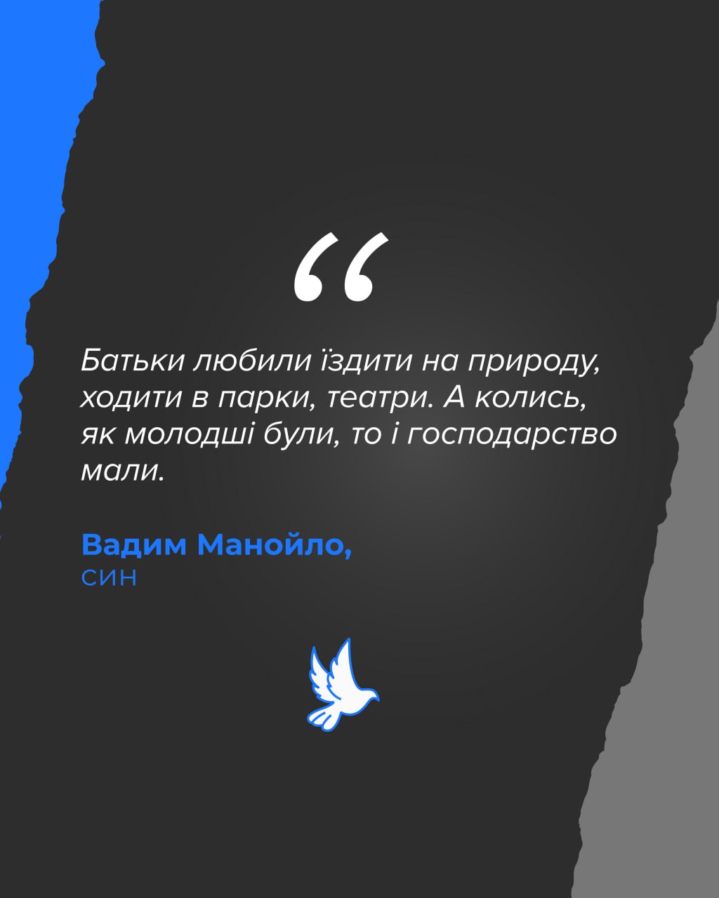 Також внаслідок атаки загинули Світлана та Анатолій Манойло. Загиблій було 65 років, а її чоловікові — 70.