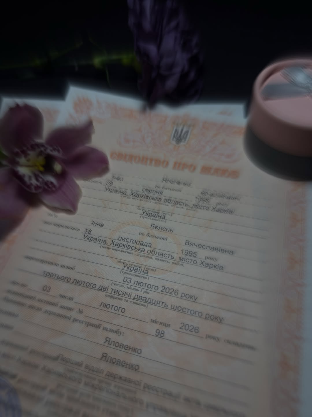 Як відомо з опублікованого свідоцтва про шлюб, тепер Інна Бєлень буде носити прізвище чоловіка — Яковенко.