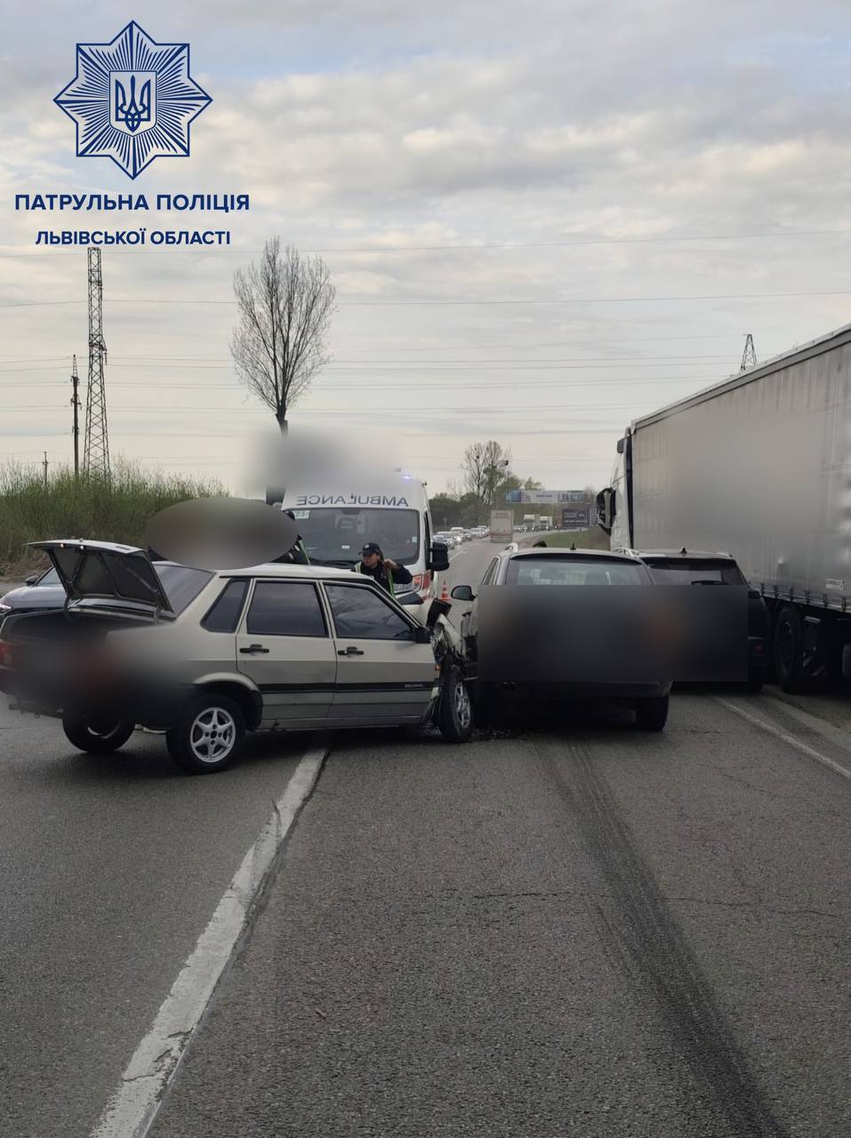 "До уваги водіїв! Львівська область. На 538 км автодороги М-06 "Київ — Чоп", поблизу населеного пункту Винники відбулася ДТП попередньо з травмованими", — йдеться у повідомленні.