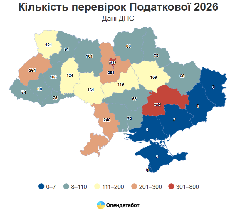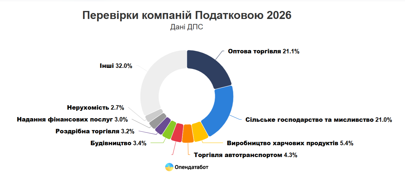 "Найбільше уваги цьогоріч Державна податкова служба планує приділити компаніям — на них припадає 78% або 3 542 запланованих перевірок", — поінформували в "Опендатаботі".