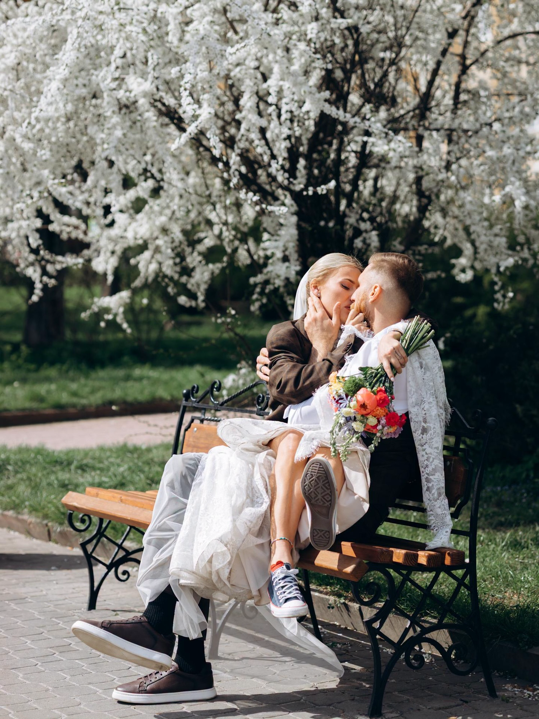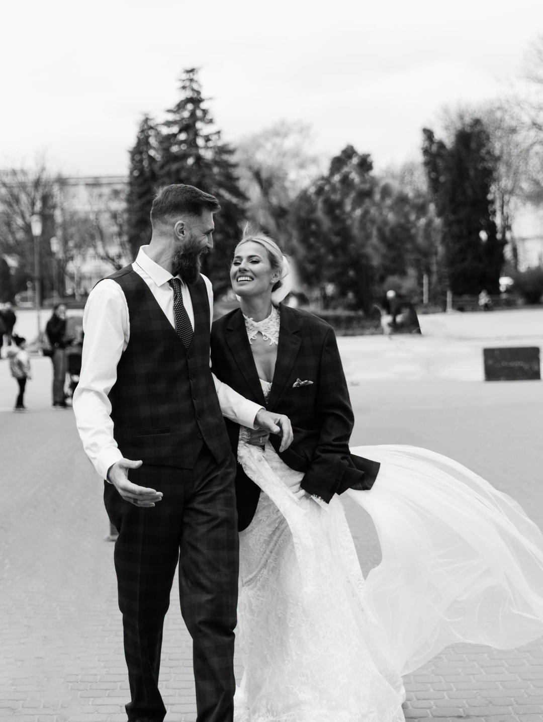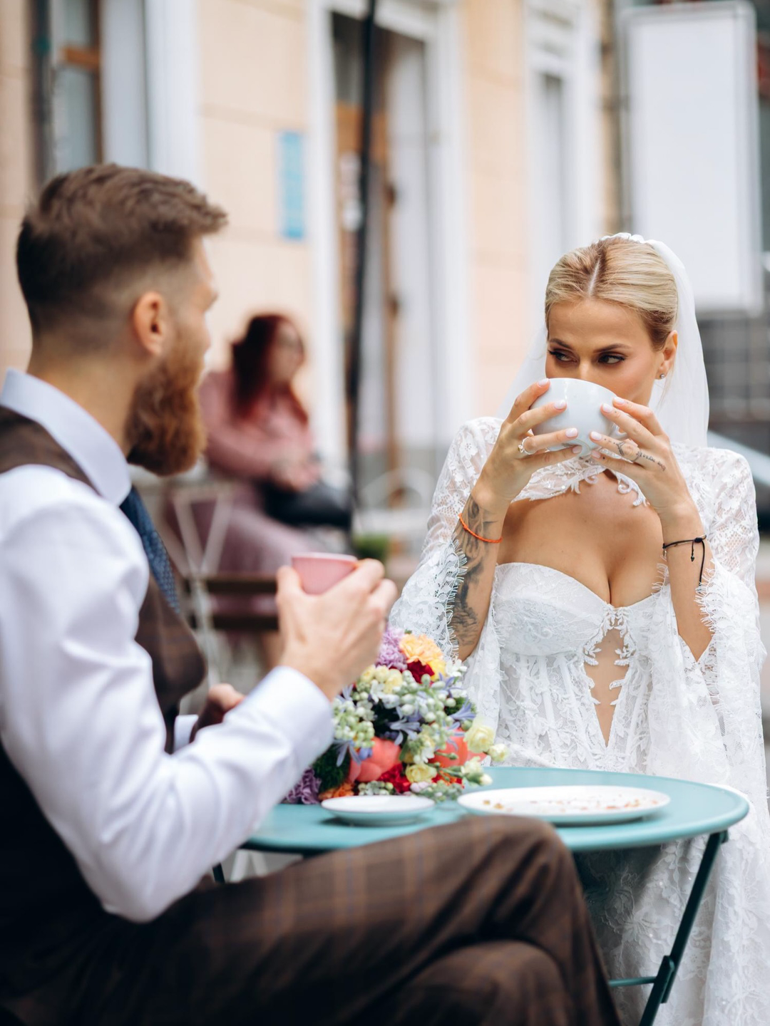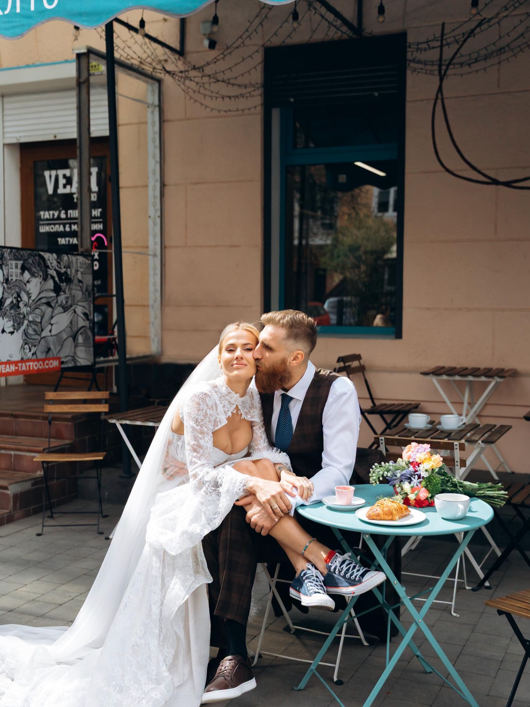 Весілля пари відбулося у нестандартному форматі та без традиційної урочистості — молодята провели день у невимушеній атмосфері, прогулюючись містом та проводячи час у публічних місцях. Подія відбулася у Тернополі. За словами пари, після офіційної церемонії вони встигли випити кави, купити книги та пообідати, перетворивши весільний день на звичайну міську прогулянку з елементами святкування.