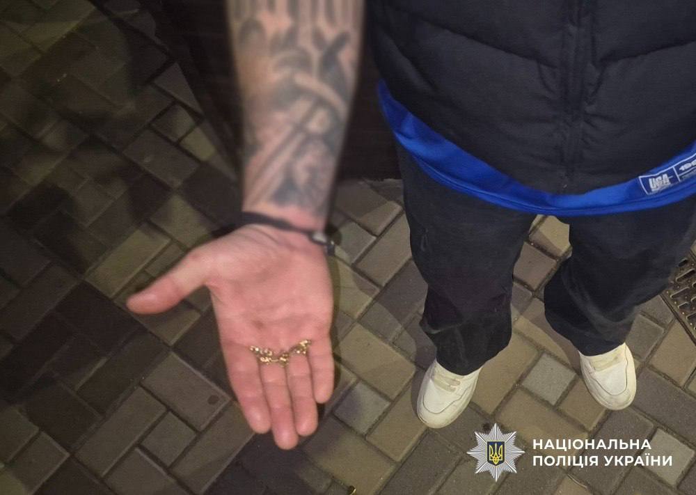 У столиці правоохоронці затримали 34-річного іноземця, який серед ночі напав на перехожого поблизу розважального закладу. Грабіжник силоміць зірвав із шиї потерпілого золотий ланцюжок із хрестиком, після чого намагався втекти з місця злочину на власному автомобілі.