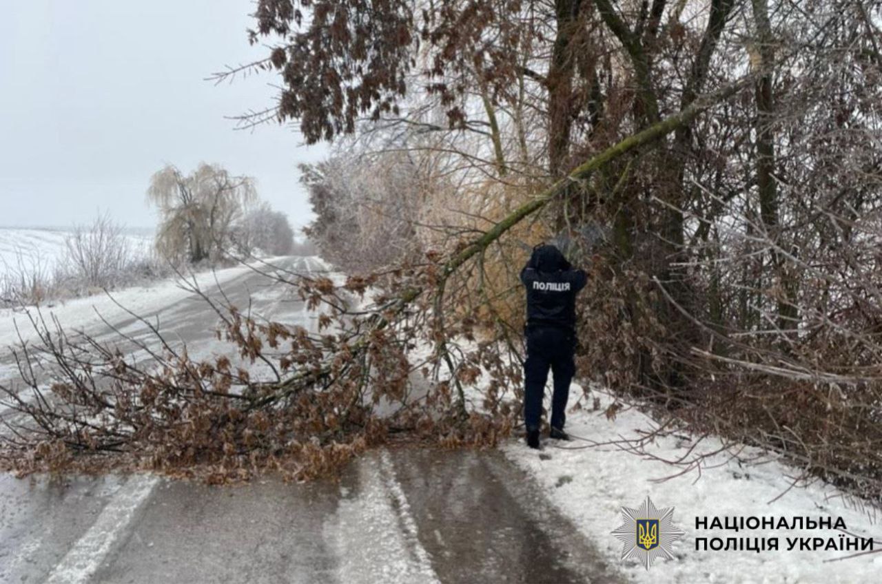 Окрім ожеледиці, спостерігається обмерзання дерев, що призводить до їх падіння на проїзну частину та створює небезпеку для учасників дорожнього руху.