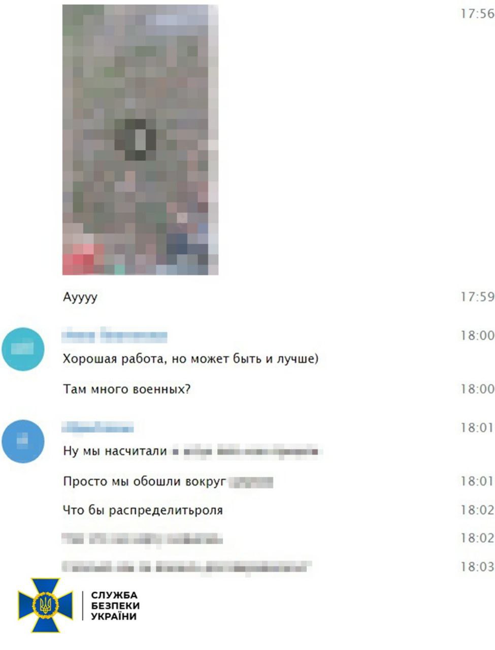 "Також коригувальники обходили периметри потенційних "цілей" та фотографували їх з далекої відстані або знімали на відео під виглядом телефонної розмови. Зібрану інформацію вони месенджером пересилали ФСБ", — зазначили у СБУ.