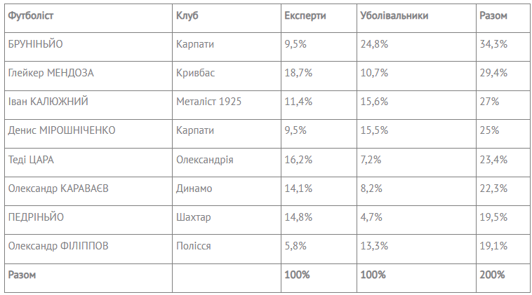 Звання найкращого футболіста вересня отримав хавбек львівських "Карпат" Бруніньйо. Минулого місяця бразилець провів чотири поєдинки в УПЛ, відзначився одним голом та віддав один результативний пас — це йому вдалося зробити у матчі з київським "Динамо" (3:3).
