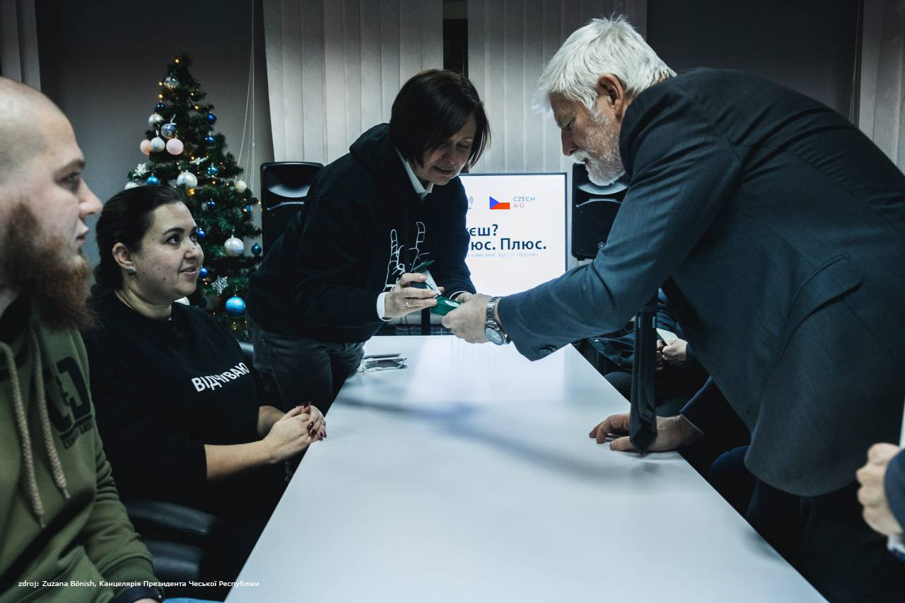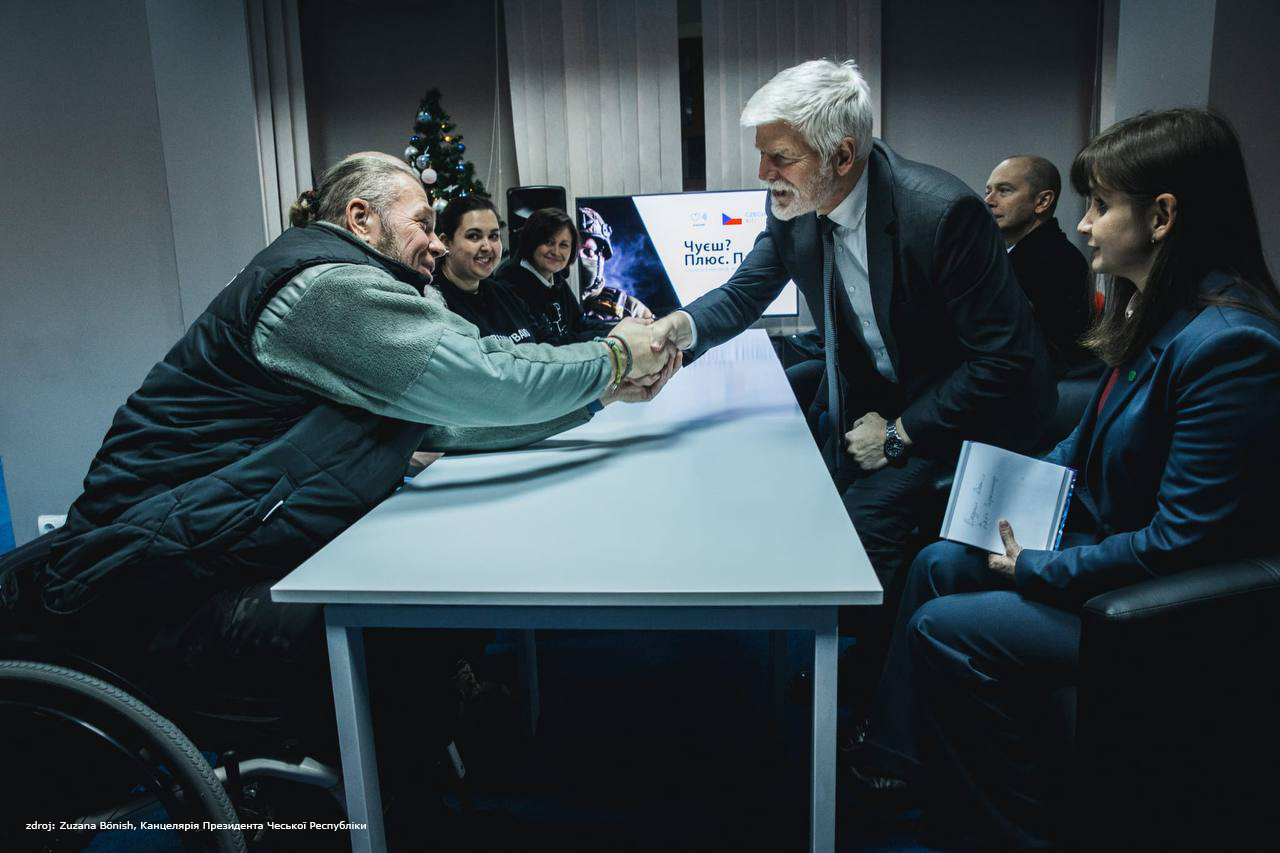 Під час візиту президент Чехії поспілкувався з двома ветеранами — Вадимом та його сином Даніїлом Гончаренками, які отримали комплексну підтримку від громадської організації "Відчуй" у межах проєкту "Чуєш? Плюс. Плюс.". Зустріч дала змогу безпосередньо почути їхній досвід та обговорити значення реабілітації слуху як важливого чинника повернення до повноцінного та активного життя.