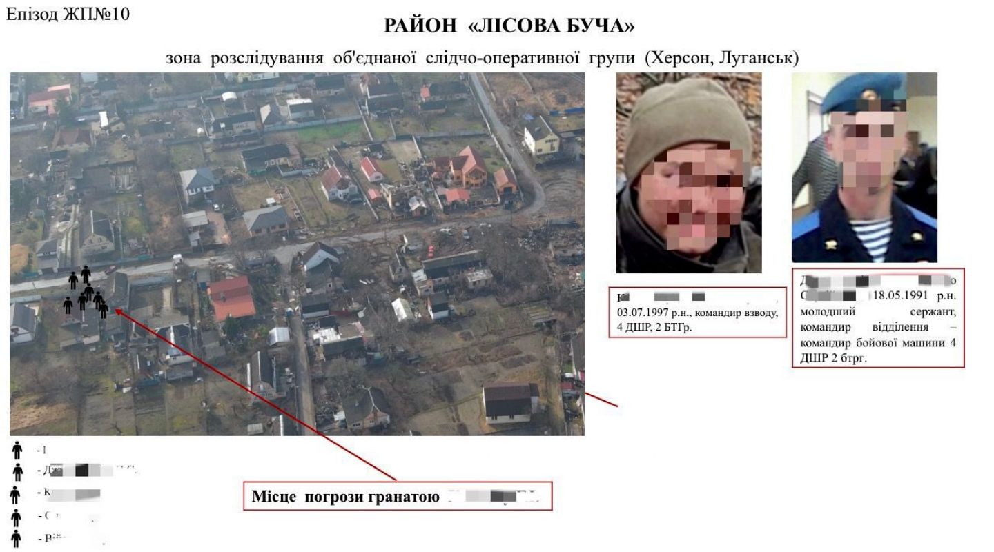 "У результаті проведеної роботи слідчі та прокурори зібрали вичерпні докази щодо злочинів. Встановили безпосередніх виконавців та надали унікальну, комплексну правову оцінку діям командира взводу. Його притягнуто до відповідальності за трьома формами воєнного злочину — віддання злочинного наказу, безпосереднє вчинення злочину спільно з іншими військовослужбовцями та командна відповідальність (відповідальність за злочини, вчинені підлеглими)", — додали в Офісі генпрокурора.