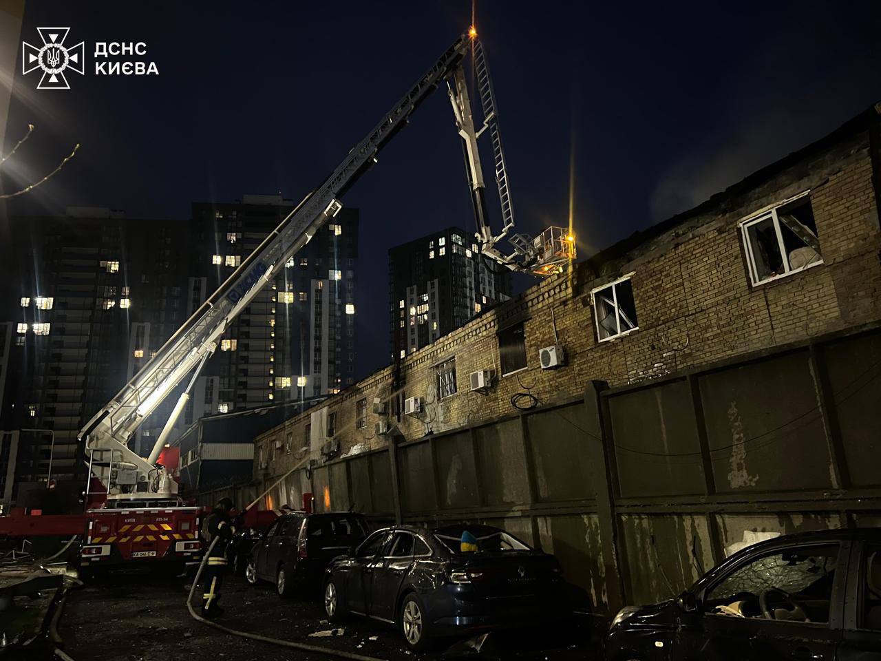 Попри роботу сил ППО, уламки ракет спричинили пошкодження у Деснянському районі столиці, де горів двоповерховий будинок. У Шевченківському районі уламки впали безпосередньо на дитячий майданчик.