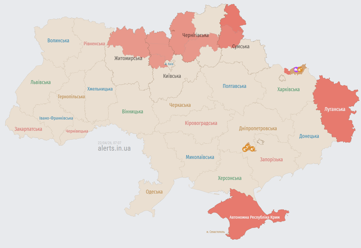 Ранок 22 квітня розпочався для українців під звуки повітряної тривоги та повідомлення про рух ворожих безпілотників. Сили протиповітряної оборони працюють по цілях у кількох регіонах, намагаючись відбити загрозу з повітря.