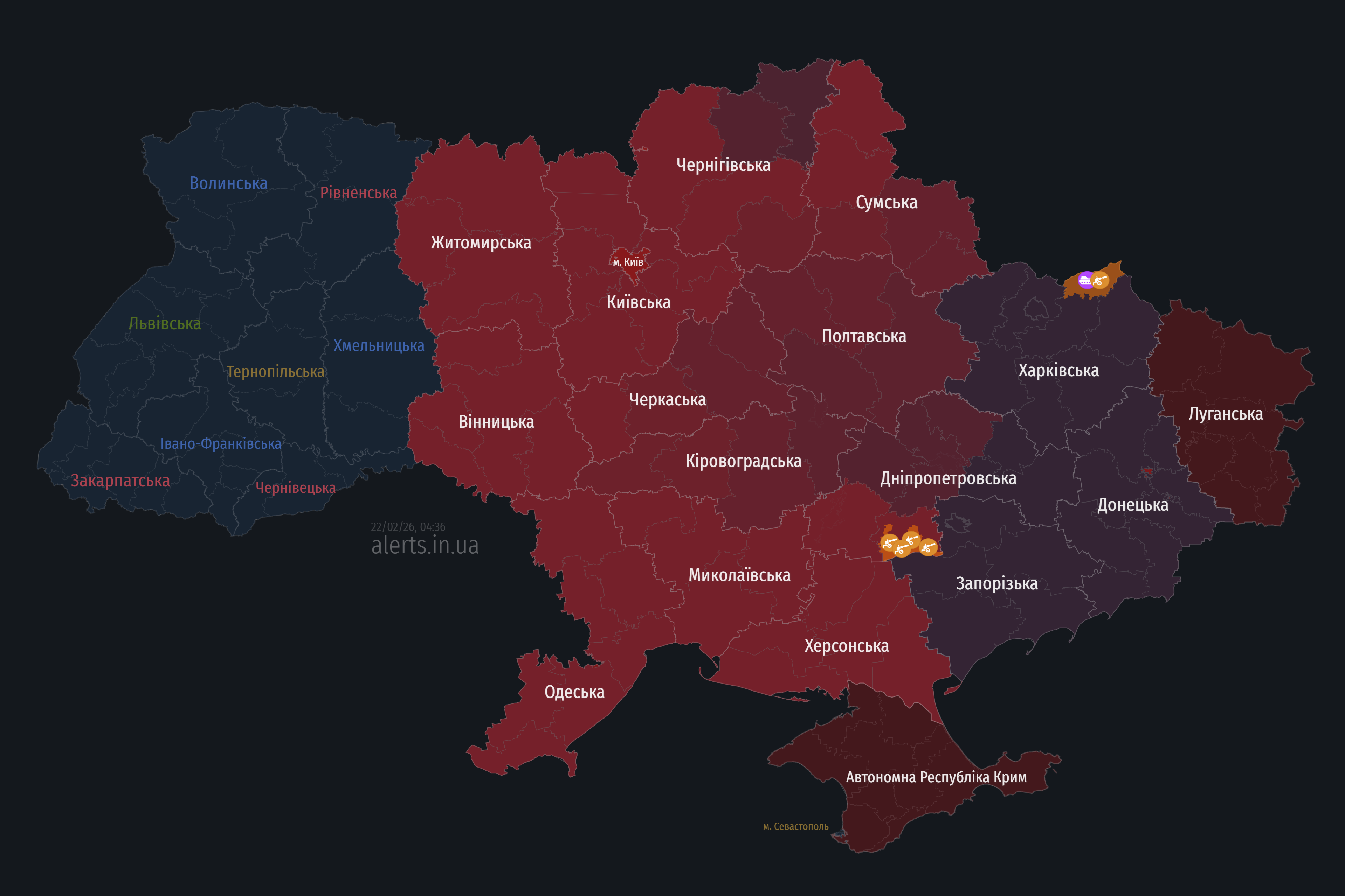 Станом на зараз мапа повітряних тривог має такий вигляд: