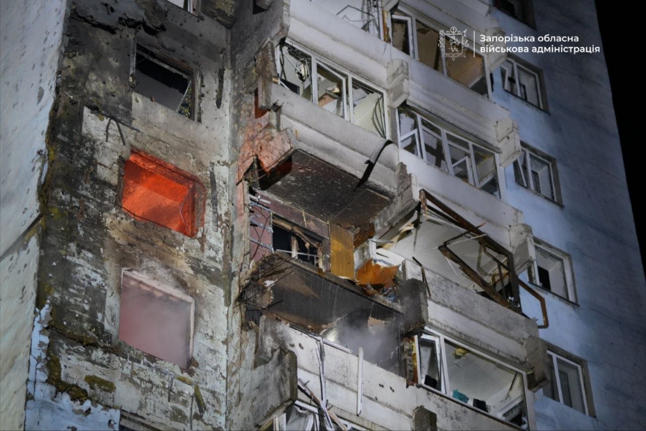 Ворог бив по обласному центру балістикою й дронами. Очільник Запорізької обласної військової адміністрації Іван Федорова о 02:41 повідомляв про влучання ворожого дрона в багатоквартирний будинок. За його словами, три людини поранені, виникли пожежі, є руйнування. Зокрема, пошкоджено житлові забудови, торговий об'єкт.