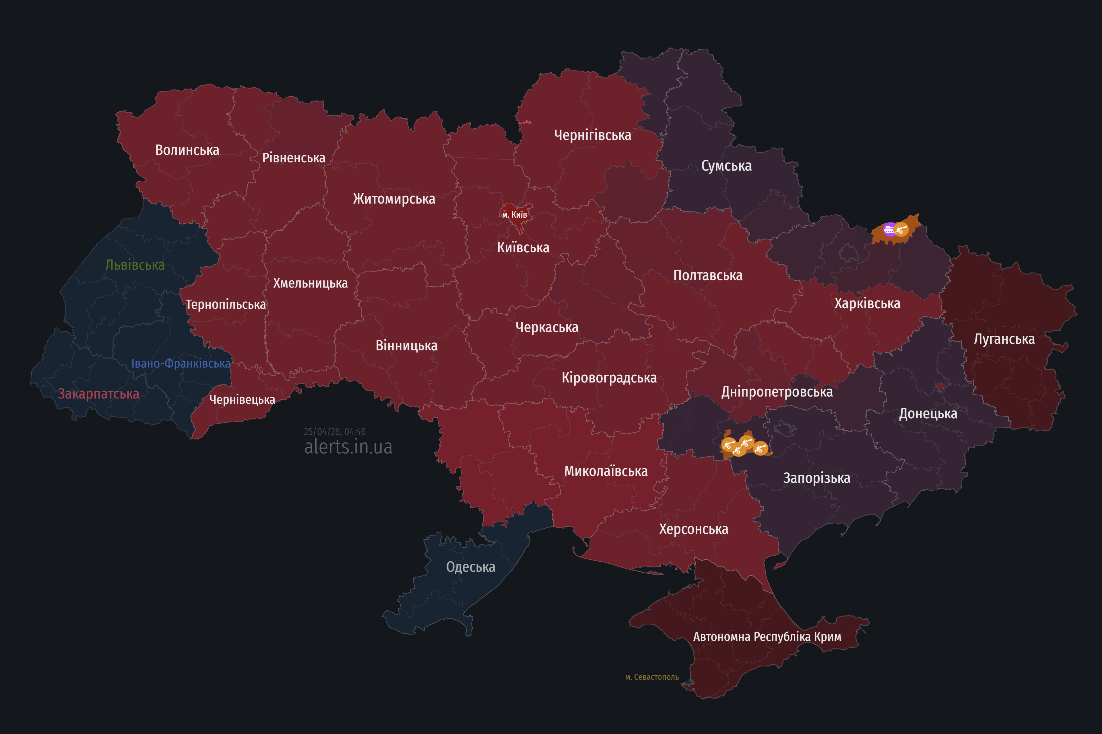 У ніч на суботу, 25 квітня, російські окупанти здійснюють масовану ракетно-дронову атаку по Україні. Два міста вже опинилися під ворожим ударом — у Дніпрі та Харкові зафіксовано значні пошкодження.