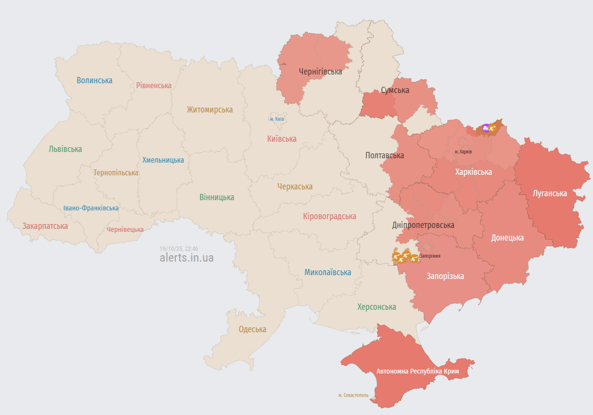 У неділю, 19 жовтня, російська армія атакує Україну ударними безпілотниками. Ворожі дрони рухаються одразу з кількох напрямків.