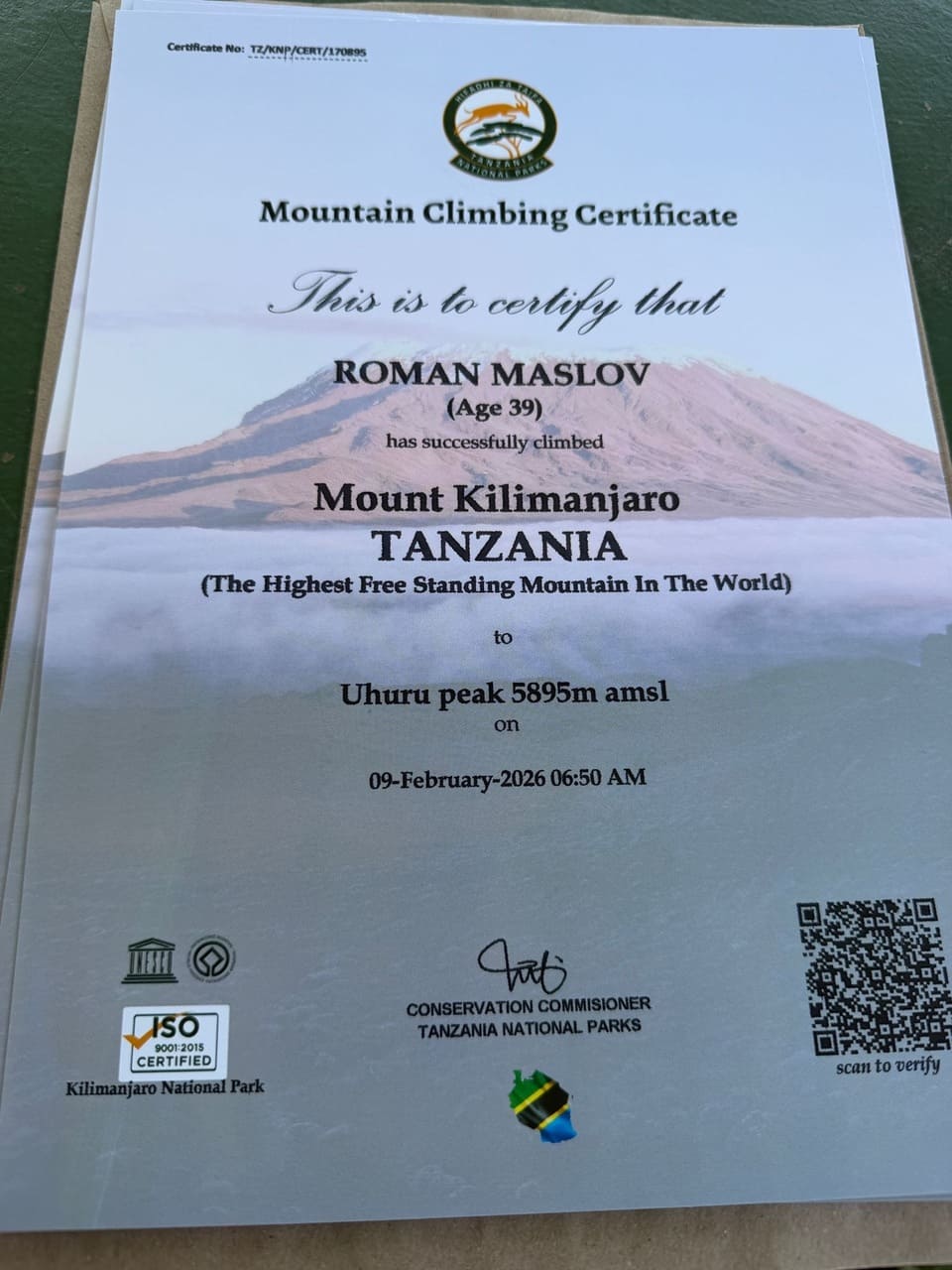 Український підприємець, інвестор і атлет Ironman Роман Маслов здійснив успішне сходження на пік Ухуру — найвищу точку гори Кіліманджаро на висоті 5 895 метрів. Це національний рекорд України у категорії Спорт і Розміри,