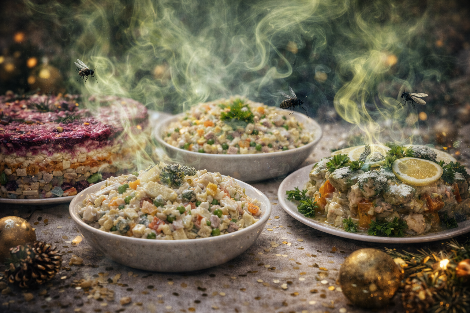 Підготовка до святкування Нового року рідко обмежується одним вечором — часто вона розтягується на кілька днів. Салати, закуски й запечені страви потребують часу, зусиль і терпіння, тож після свят їх особливо шкода викидати. Адже в кожну з них вкладено не лише інгредієнти, а й чимало сил та настрою. Та Діана Власова радить не експериментувати з їжею.