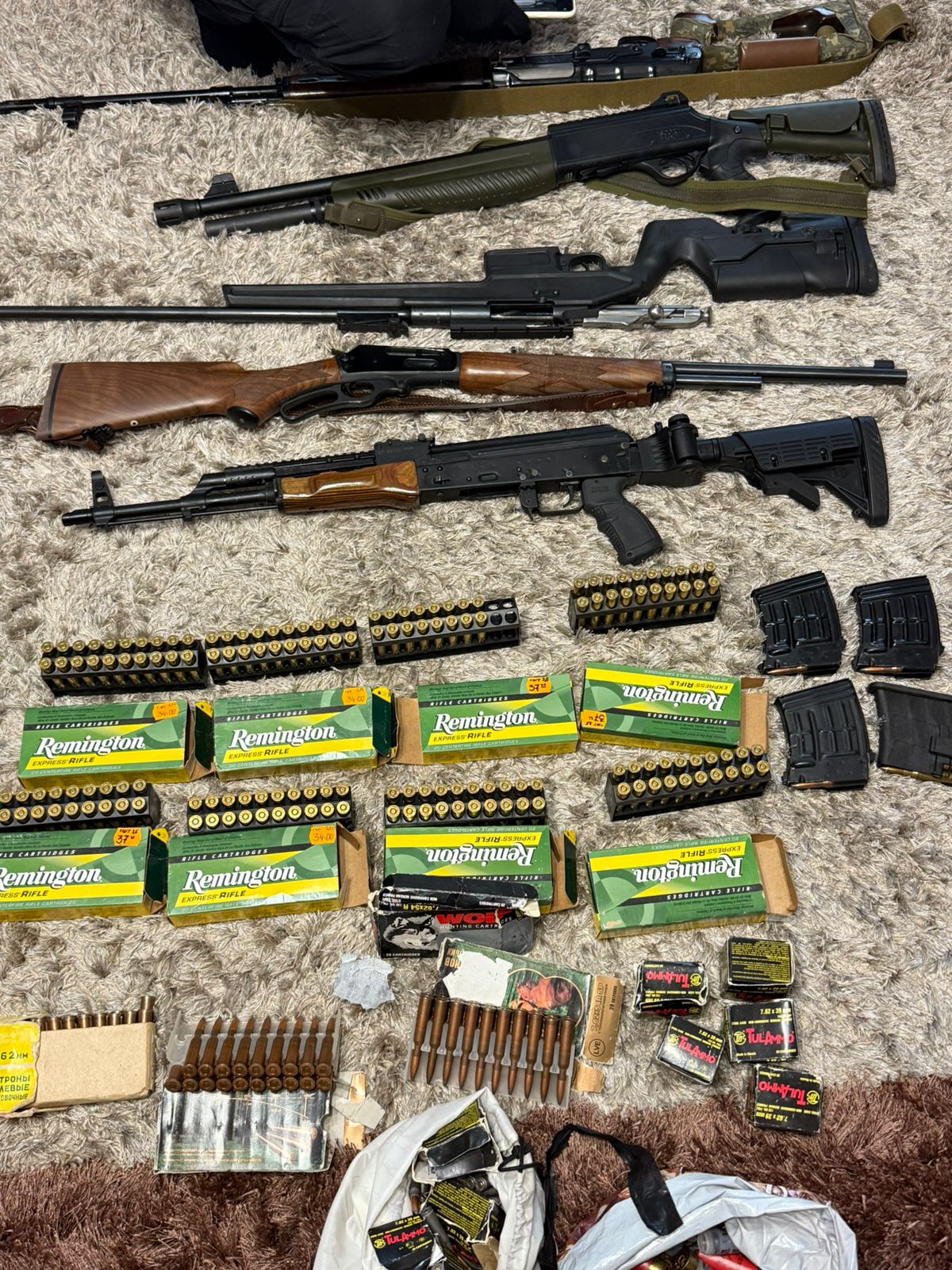 "За їх результатами виявлено та вилучено автомат АКМС калібру 7,62 міліметра, снайперську гвинтівку СВД, гвинтівку Мосіна, карабін Вінчестер, пристрій для відстрілу гумових куль Escort Magnum і декілька сотень набоїв до вказаної зброї. Крім того, вилучені мобільні телефони й автомобіль, які використовувалися в протиправній діяльності", — наголосили в Держприкордонслужбі.