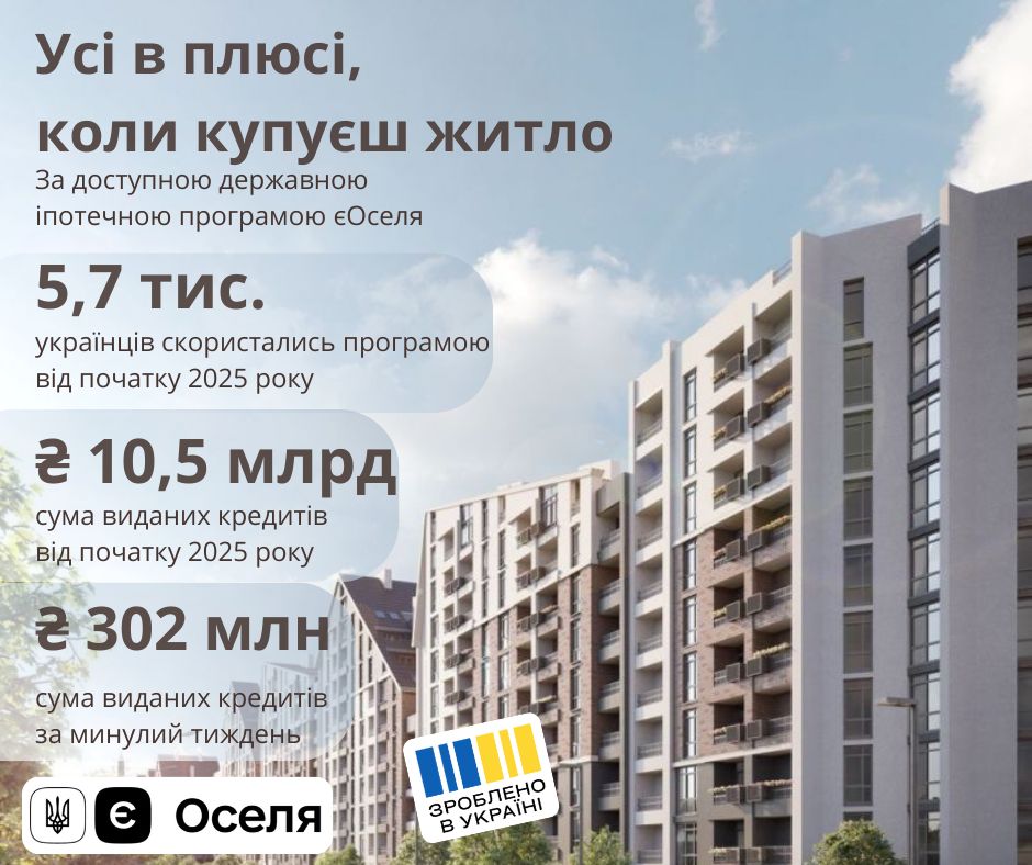 У 2025 році кредити на власне житло за програмою доступної іпотеки "єОселя" отримали майже шість тисяч українських родин. Йдеться про суму понад 10 мільярда гривень.