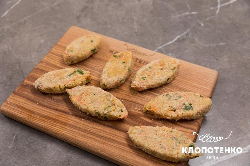 - Руками сформувати котлети овальної форми та обваляти у панірувальних сухарях.