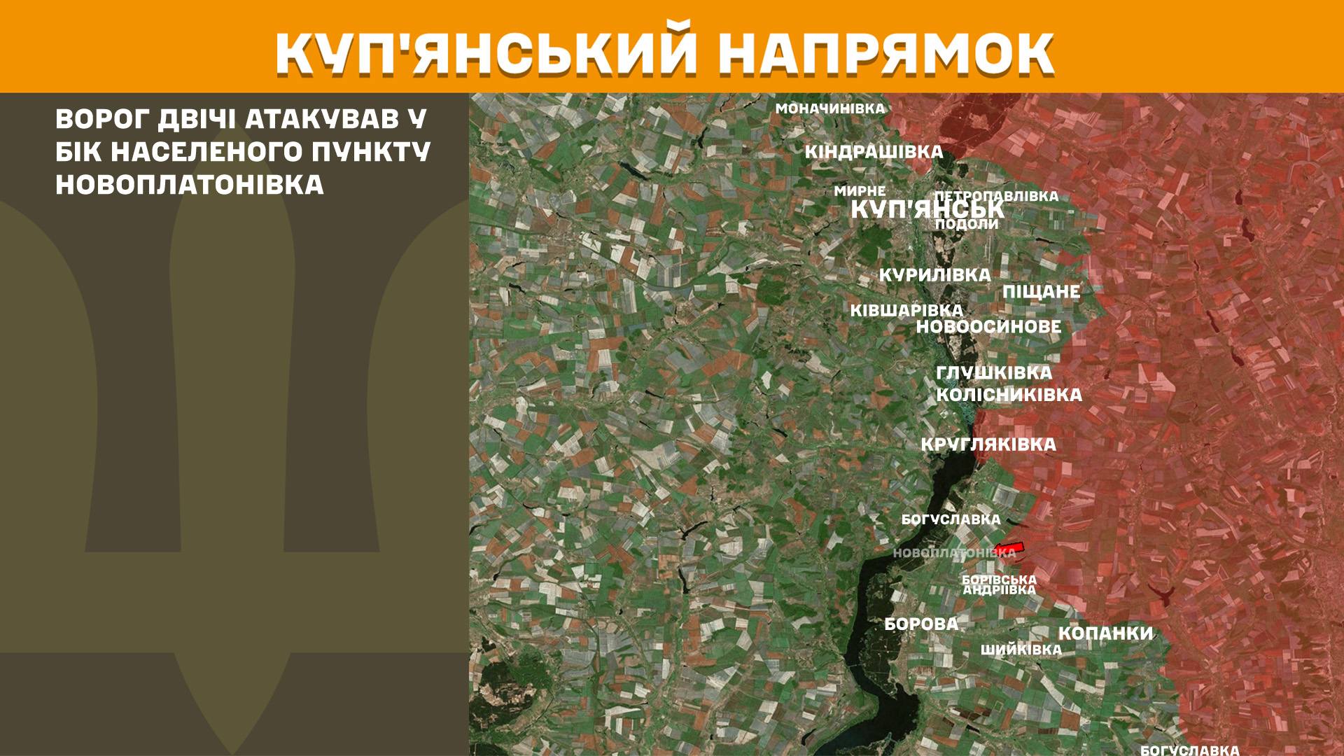 На Куп’янському напрямку ворог двічі атакував у бік населеного пункту Новоплатонівка.