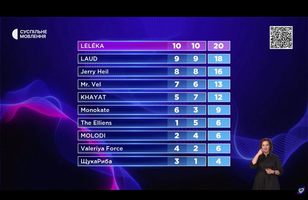 Зокерема, артистка отримала 10 балів від журі та 10 балів за результатами голосування глядачів.