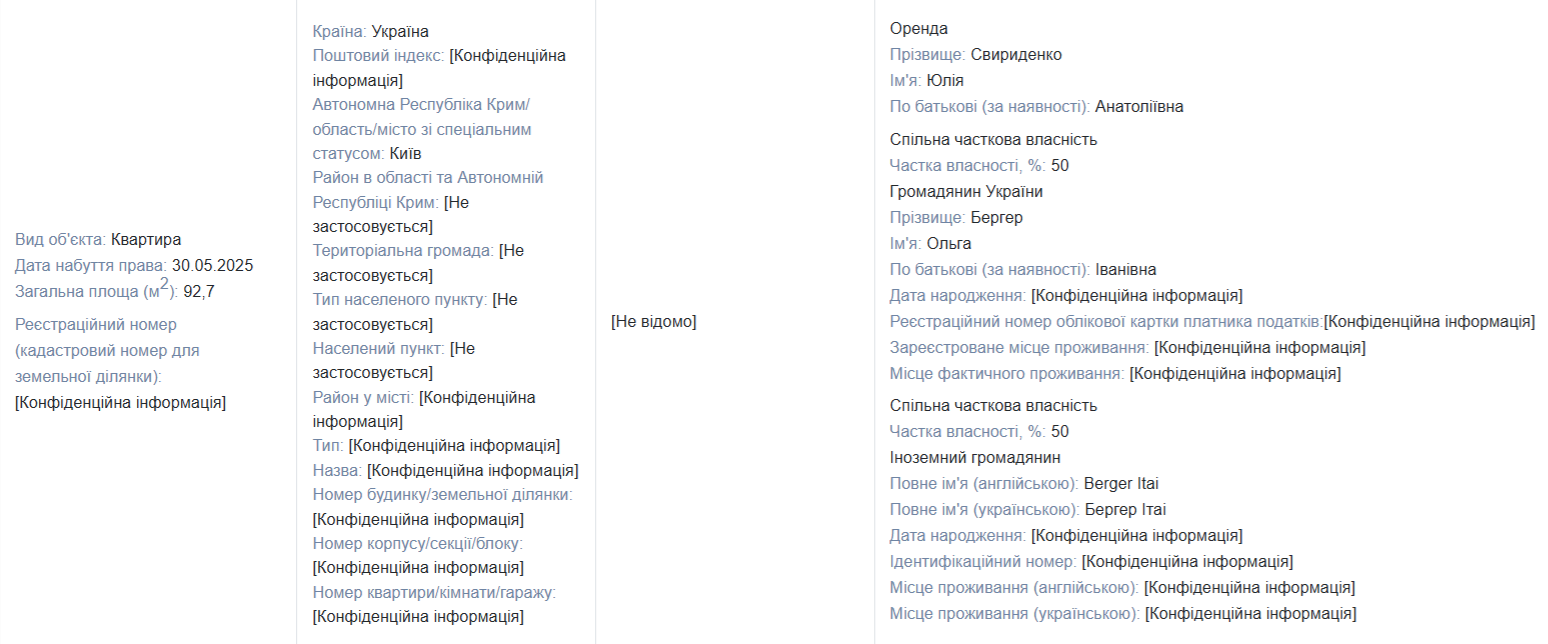Минулого року Свириденко розпочала орендувати квартиру площею 92,7 квадратного метра в Києві.