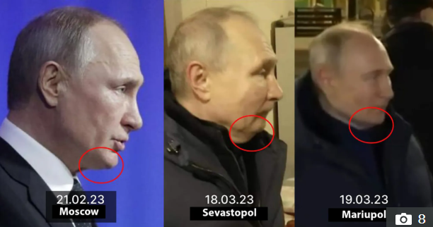 Ще одна поява Путіна — на передовій в Україні, у Маріуполі в березні 2023 року — забезпечила лише 40-відсотковий збіг, а фотографії Путіна в Криму того ж року мали ще нижчий показник схожості — лише 18%.