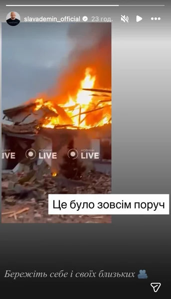 "Шахед влетів у будинок за 200 метрів від мого. Так близько за ці майже чотири роки ще не було. Загинула сусідка", — написав він, вийшовши на зв'язок з шанувальниками після пережитого.