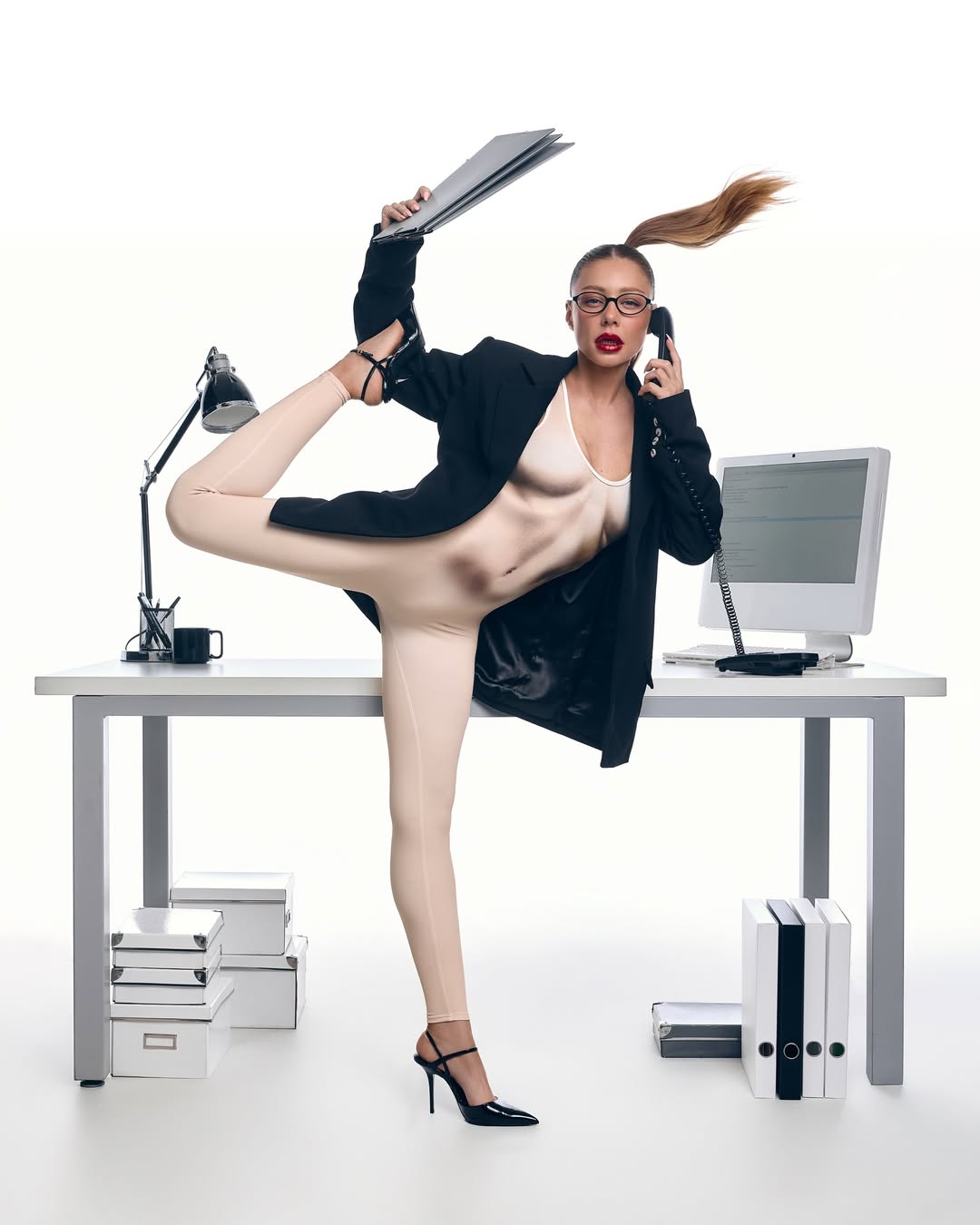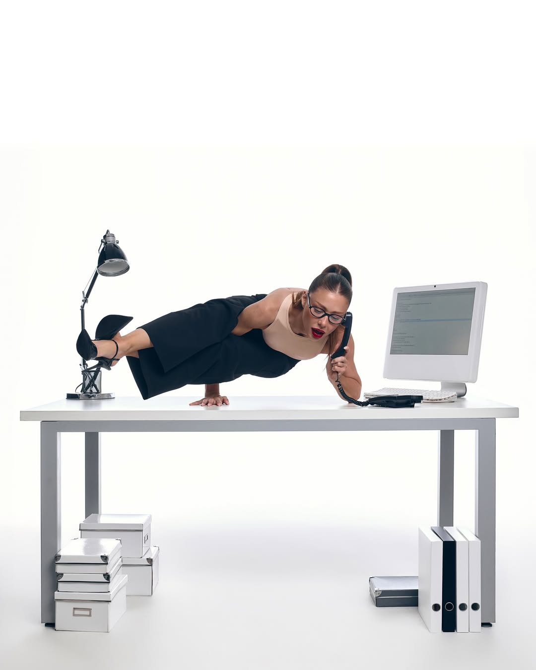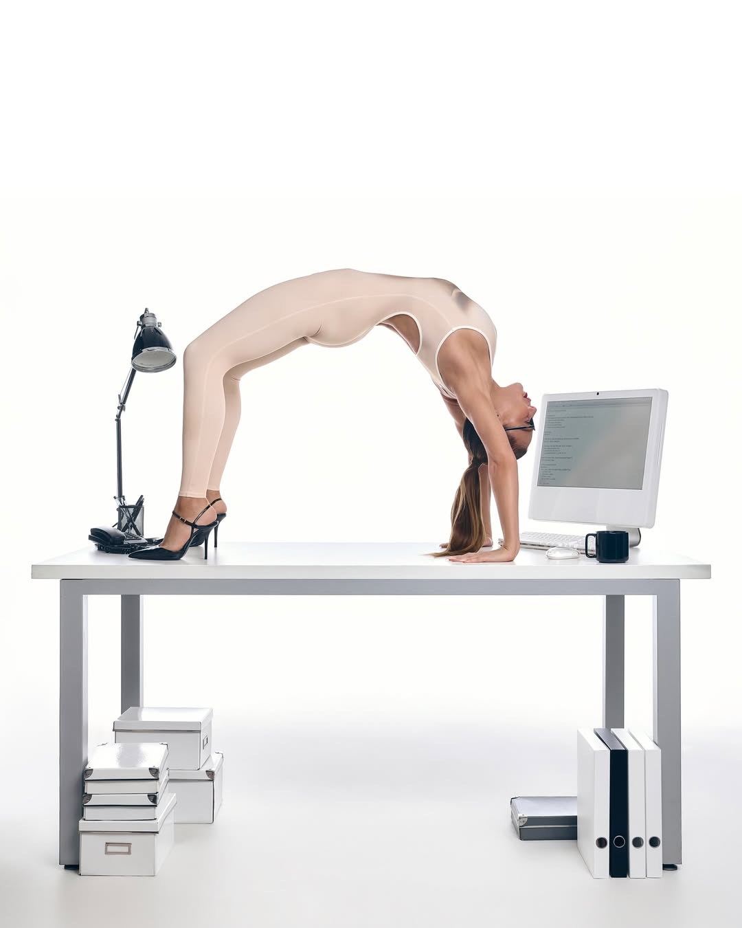 Співачка позувала в обтислому комбінезоні на офісному столі, демонструючи улюблені асани з йоги. Таким способом 40-річна Кароль представила власну колекцію одягу в колаборації з українським брендом.