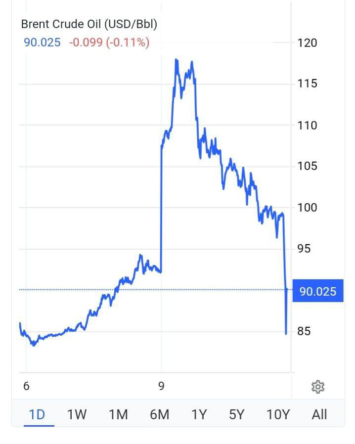 Аналітики Bloomberg зауважили, що після такої заяви американського лідера ціна на нафту відразу впала на рівень нижче 90 доларів за барель. А ще зранку в піку нафта Brent коштувала 116 доларів за барель.