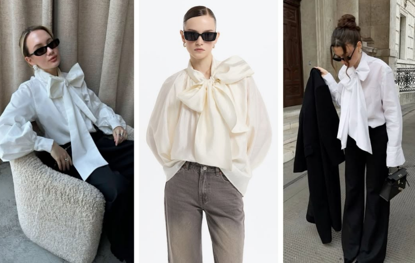 Для ніжного і жіночного вигляду варто обрати блузи з косинкою або бантом. Цей аксесуар додає легкості й елегантності та гарно поєднується з будь-якими предметами гардеробу, що робить образ витонченим.