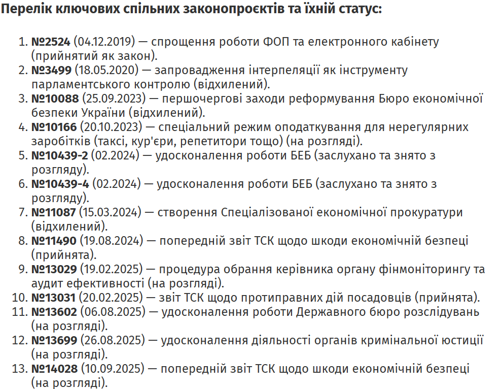 Проте, за словами журналістів, більшість ініціатив щодо реформування слідчих органів відхилено, знято з розгляду або залишаються на розгляді роками, тоді як спрощення для бізнесу частіше просуваються.
