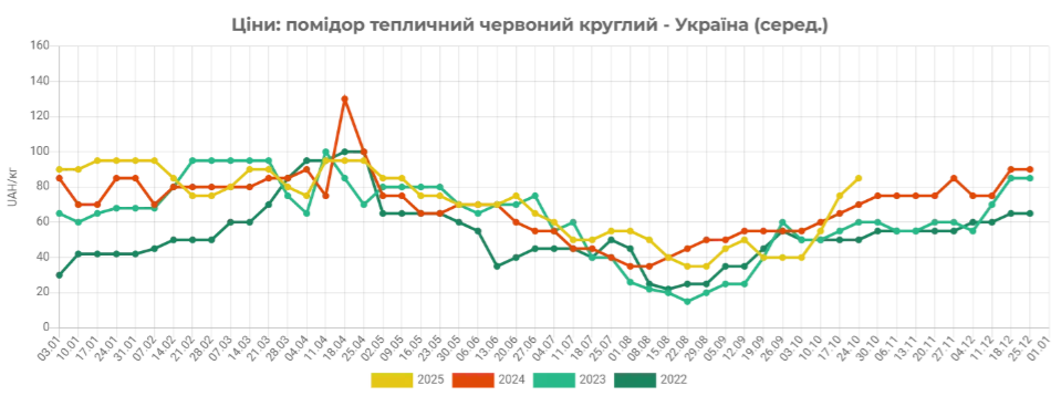 До речі, внаслідок подорожчання ціни на тепличні помідори в Україні вже в середньому на 22% вищі, ніж наприкінці жовтня 2024 року.