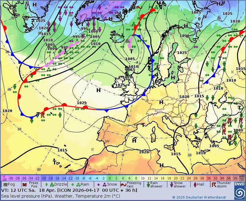 Цими вихідними, 18 та 19 квітня, в Україні переважатиме помірно тепла погода, місцями з короткочасними дощами. У деяких областях буде слабкий туман.