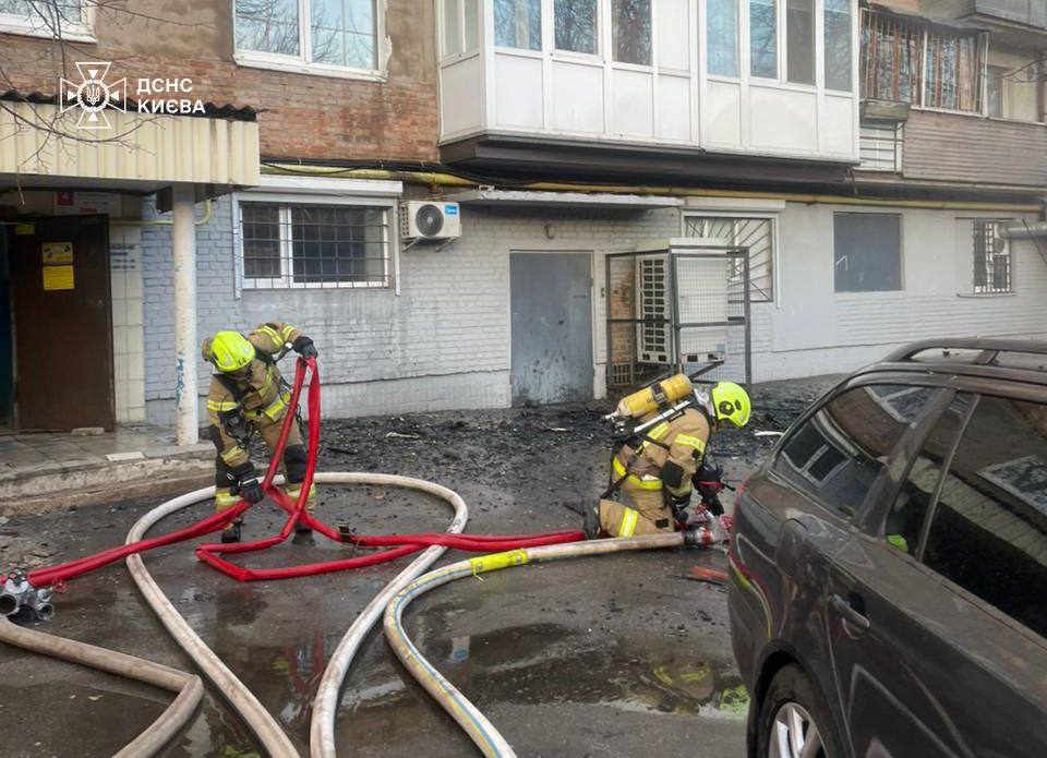 "Повідомлення про пожежу на вулиці Кирилівській надійшло о 16:36. Загоряння сталось у квартирі на восьмому поверсі, з розповсюдженням вогню на дев'ятий", — йдеться у повідомленні.