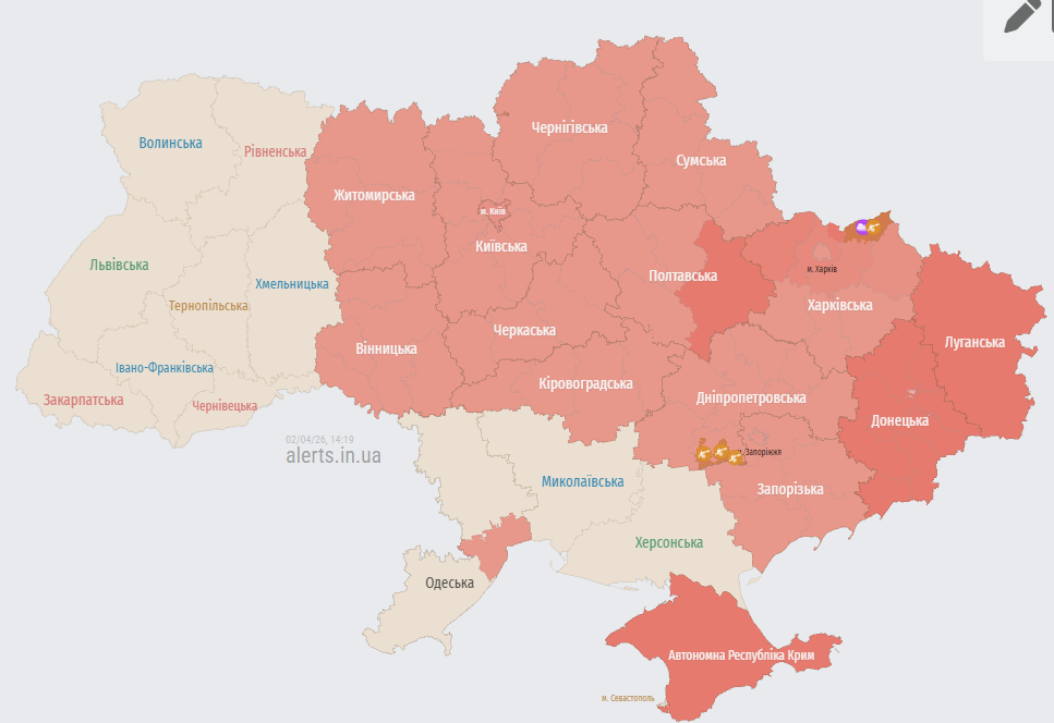 У четвер, 2 квітня, у столиці та низці областей України оголошували повітряну тривогу. Небезпека була пов'язана із загрозою застосування балістичного озброєння з території країни-агресорки Росії.