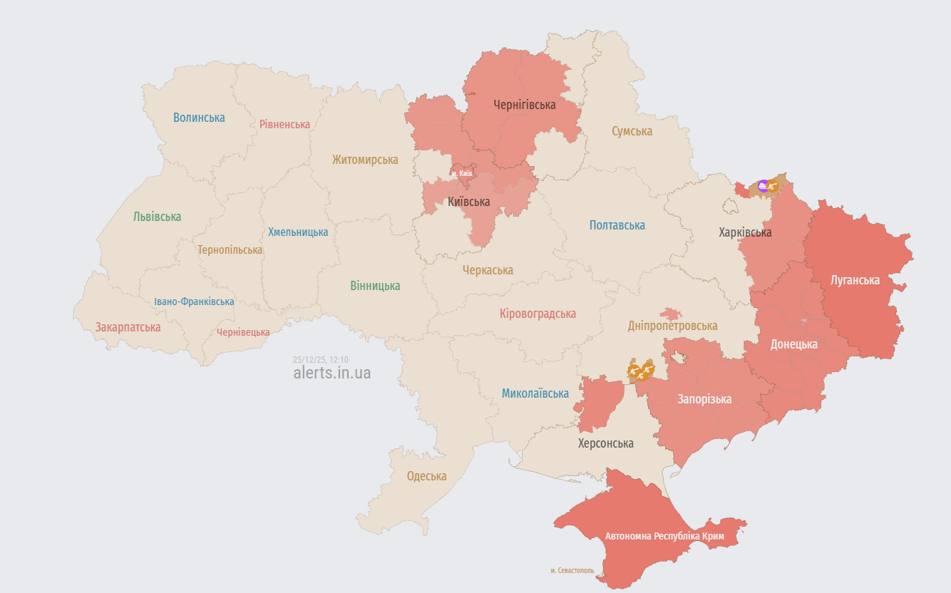 У четвер, 25 грудня, у Києві та Київській області оголошували повітряну тривогу. Причиною був рух ударних безпілотників у напрямку Вишгорода та столиці.