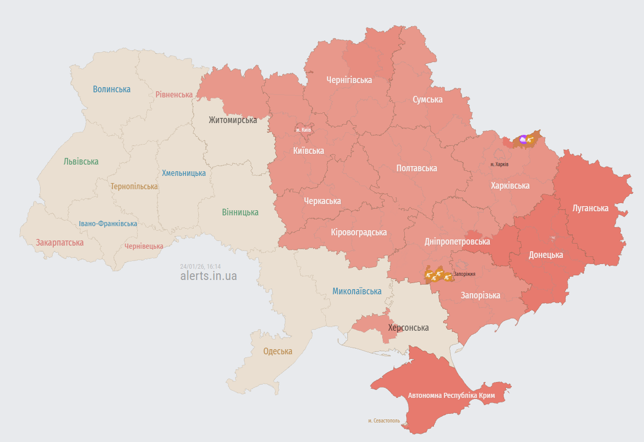 У суботу, 24 січня, столиця та кілька українських регіонів вчергове опинилися під загрозою ворожої атаки. Повітряна тривога була оголошена через високу ймовірність застосування ворогом балістичного озброєння,