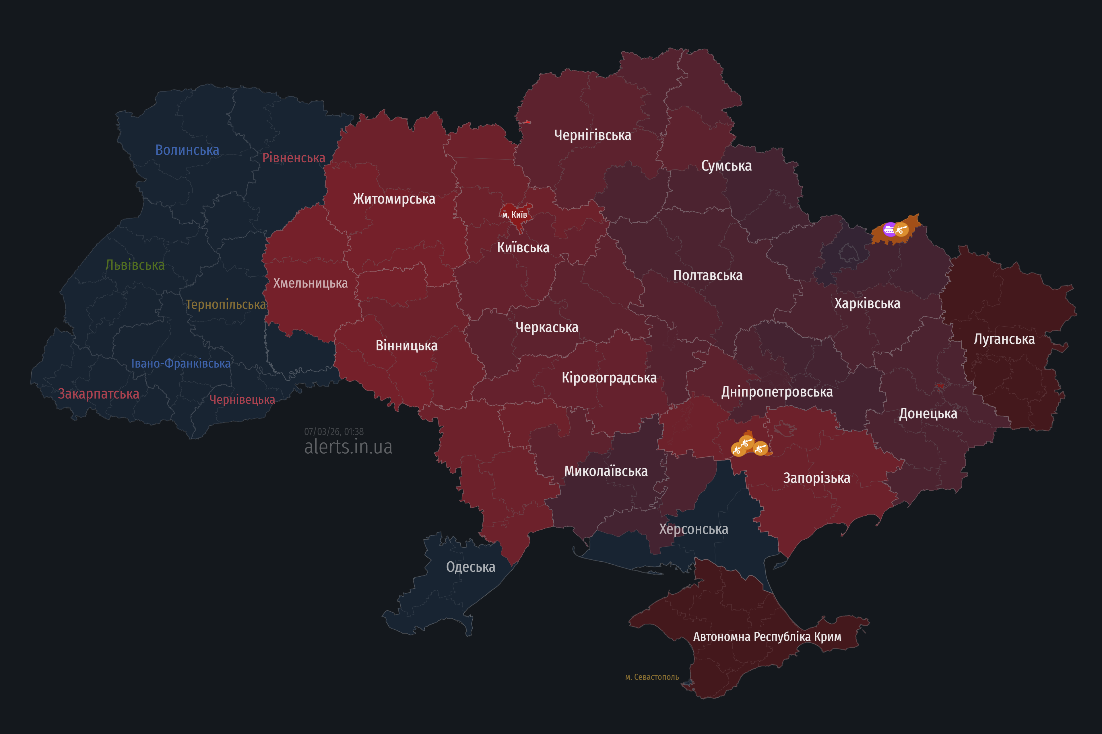 У ніч на суботу, 7 березня, у столиці України неспокійно — ворожі війська атакують місто балістикою. Також для Києва існує загроза удару безпілотниками.