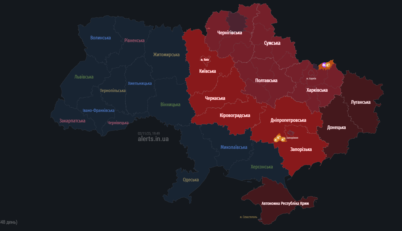 Ввечері 2 листопада Київ та низку областей України охопила повітряна тривога. Існувала ракетна небезпека.