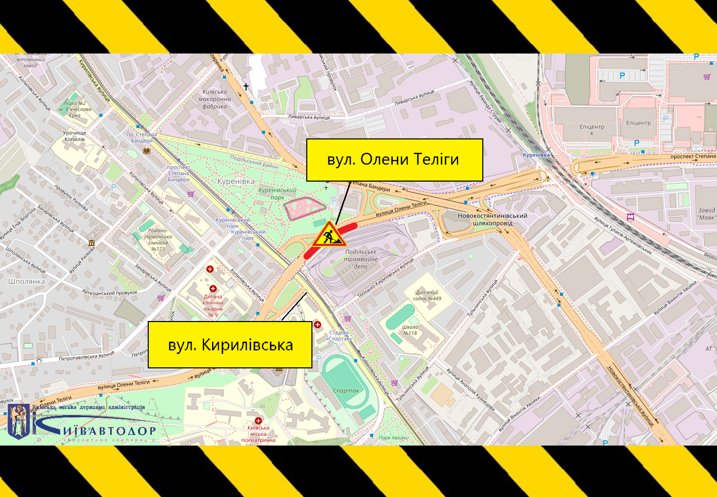 Про це повідомила Київська міська державна адміністрація. Зазначається, що з 9:00 до 17:00 частково обмежуватимуть рух вулицею Олени Теліги в Подільському районі столиці. Там дорожники проводитимуть поточний ремонт на ділянці вулиці — від Новокостянтинівського шляхопроводу до вулиці Кирилівської в напрямку станції метро "Почайна".