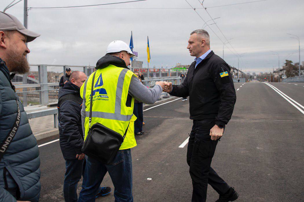 Кличко зауважив, що важливим етапом реконструкції став демонтаж опори шляхопроводу, яка була розташована під спорудою на Броварському проспекті. Дорожники винесли її за межі проїжджої частини.